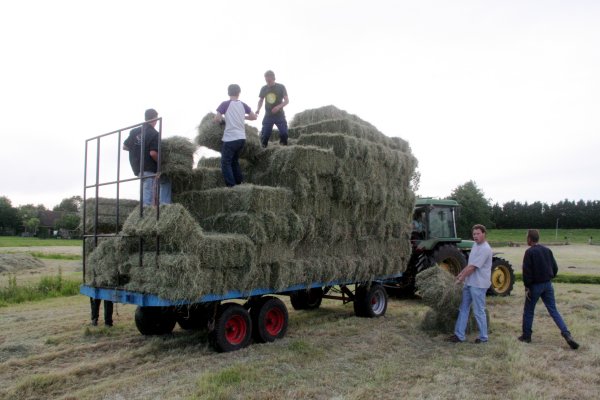 村の酪農家、ほぼ全員が乾草をつくり始めるくらい、晴天続きでした。